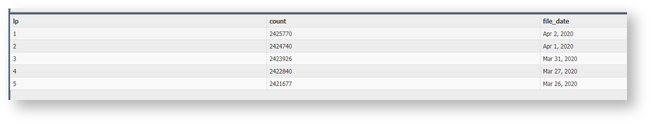 Tabela dla konkretnego dnia posiada około 2,5 mln wierszy