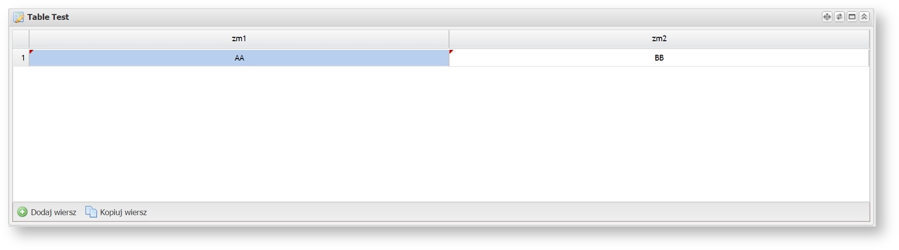 Typ pola BOOLEAN. odp "TAK" usunie domyślny przycisk kopiowania wiersza z belki w tabelce dynamicznej.