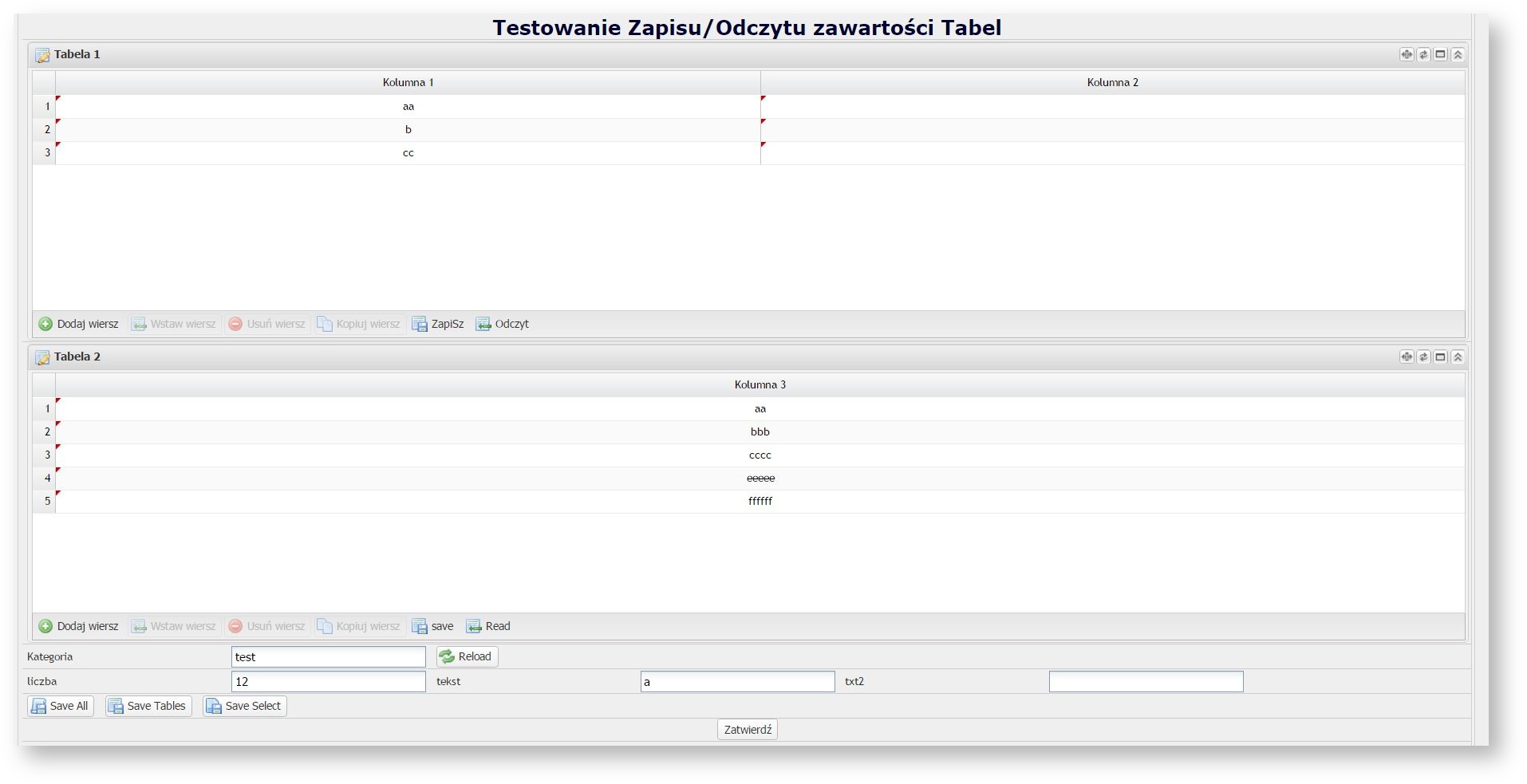 Gdy parametr "Zmienne formularza do zapisu [opcjonalnie] :" oraz "Nazwa tabel lub id tabel [opcjonalnie] :" będą puste, to zapiszą się wszystkie zmienne formularza