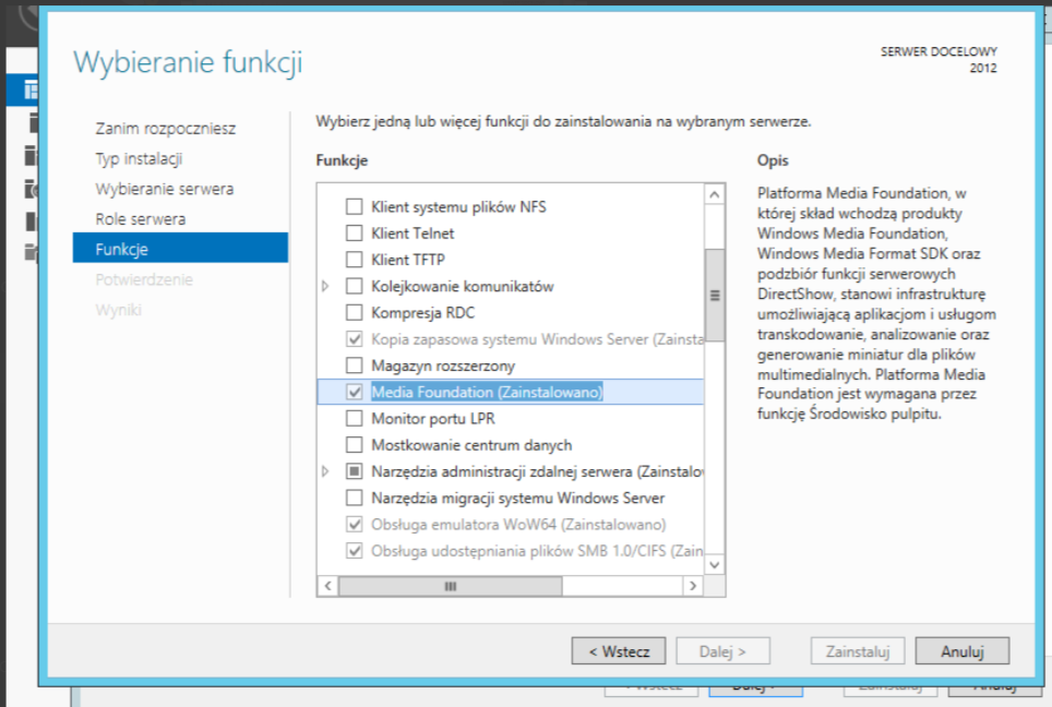 Żeby zainstalować Media Pack wymagana jest instalacja Windows Server Essentials Experience