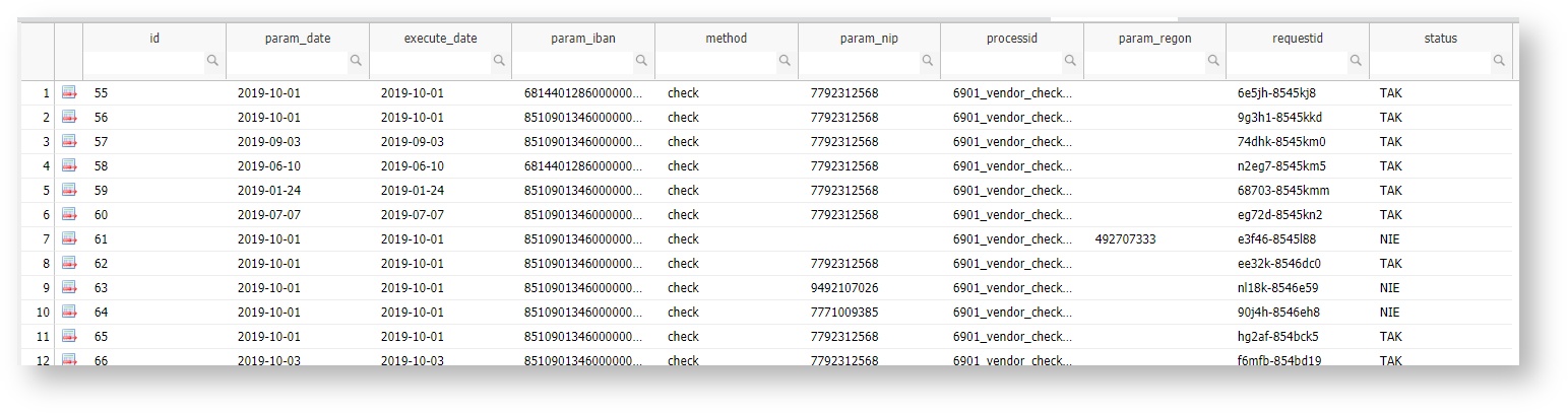 | status | Tekstowy | Dane zwrócone z bazy MF |