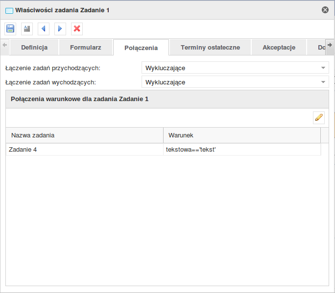 Dodatkowo możliwa jest edycja warunków istniejących połączeń warunkowych.